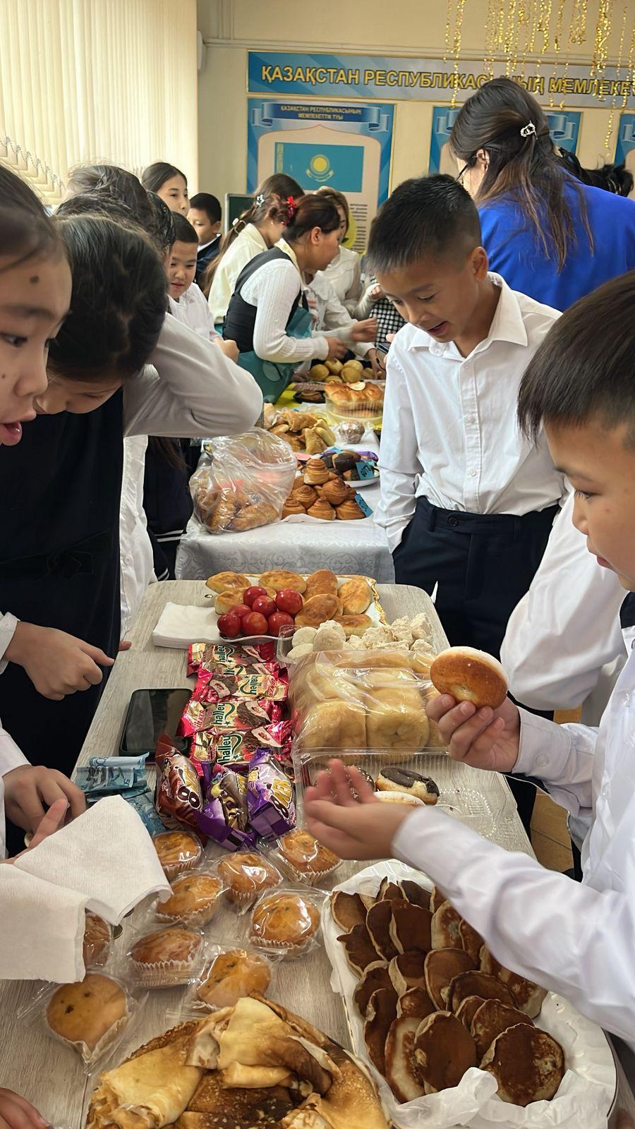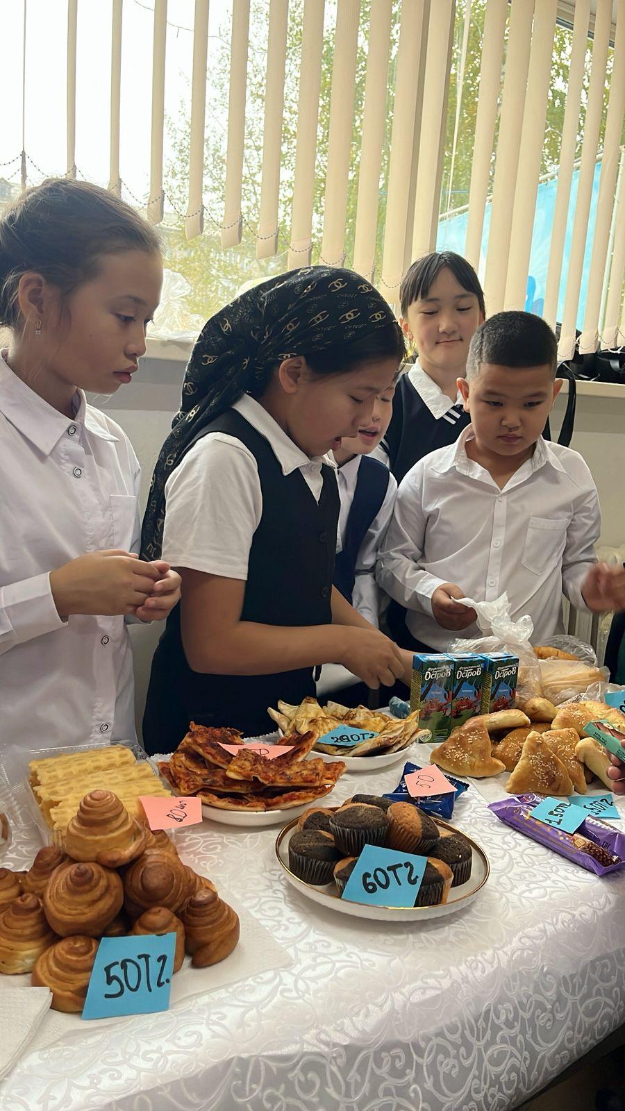 «Күз сыйы-еңбек жемісі» тақырыбында 5-7 сыныптар арасында жәрмеңке ұйымдастырылды.Жәрмеңкенің негізгі мақсаты – оқушыларды еңбекқорлыққа, бірлік пен өзара көмекке тәрбиелеу, сондай-ақ адал еңбектің қадірін ұғындыру, өз қолымен жасалған өнімнің құндылығын сезіндіру болып табылады. Сонымен қатар, оқушылар мен ата-аналарды мектеп өміріне белсенді қатысуға тарту және қайырымдылық рухын қалыптастыру да басты бағыттардың бірі болды. Шара барысында әр сынып өз қолымен әзірлеген тағамдар, тәтті тағамдар мен табиғи өнімдерді ұсынды. Әр үстел ерекше безендіріліп, оқушылар өз тауарларын жарнамалап, сатып алушылармен белсенді қарым-қатынас орнатты. Іс-шара көңілді ән мен әуенмен, көтеріңкі көңіл-күйде өтті. Жәрмеңке нәтижесінде жиналған қаржы мектеп қорына тапсырылды. Бұл қаражат мектептің материалдық-техникалық базасын нығайту мен оқушыларға қажет құрал-жабдықтарды алуға жұмсалатын болады.Аталған шара оқушылардың бойында ұжымшылдық, жауапкершілік, адалдық пен мейірімділік қасиеттерін дамытуға зор ықпал етті. Балалар еңбектің қадірін түсініп, өз еңбегімен ортақ іске үлес қосу арқылы үлкен өмірлік тәжірибе жинақтады.