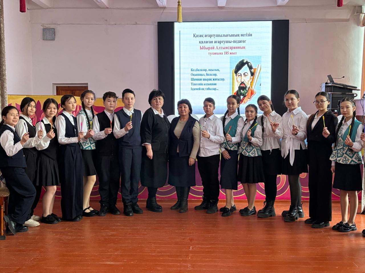 22’.01.2026 жылы Ыбырай Алтынсариннің 185 жылдығына орай “Ы. Алтынсарин- кемеңгер тұлға” тақырыбында танымдық кеш бооып өтті. Кешті қазақ тілі мен әдебиеті пәнінің мұғалімі Назирова Ж. Н. ұйымдастырып, оқушыларға ұстаз өмірінен толық мағлұмат беруге тырысты. Оқушылар сұрақтарға жауап беріп, қойылымдар қойды. Кеш соңын “ Кел, балалар, ойналық” өлеңін хормен айтып, белсенділікпен қатысты. Мұндай танымдық мақсаттағы кештердің оқушы үшін білім сапасын арттыруға маңызы зор.