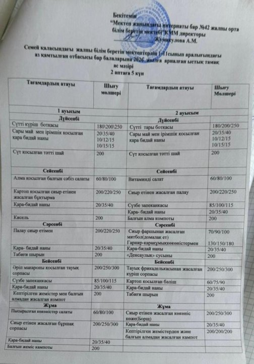 » Мектеп оқушыларына арналған 5 күндік мәзір