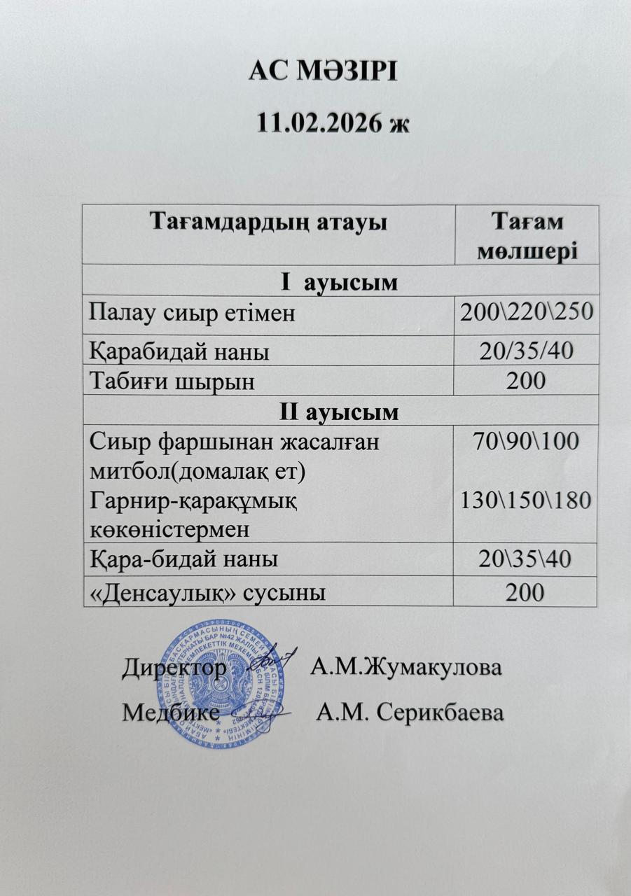 » 1-11 сынып оқушыларына арналған тамақ мәзірі (2-апта; 1,2-ауысым)